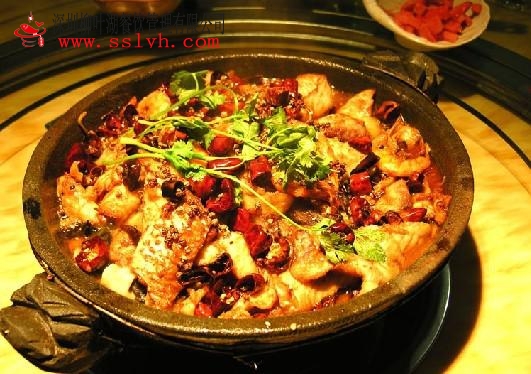 清汤石锅鱼是以川菜特色风味为主的一种特色小吃,用一块大的花岗岩岩石凿成有双耳的石锅,石锅含有大量对人体有益的铁离子元素,具有防癌、防老祛皱、美食美器、润肤等作用。用石锅炖出的鱼具有明目、养颜、健脑的作用。